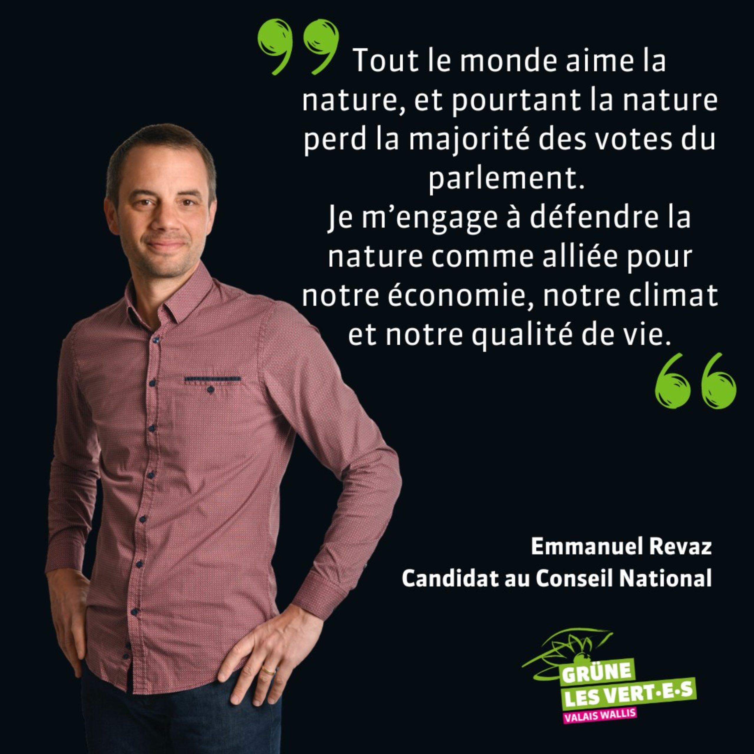 Toutefois, sa vision ne se limite pas à l’écologie. Emmanuel Revaz aspire également à dépasser les clivages politiques et à dépolariser le débat en Suisse. Il est convaincu que l’écologie est un enjeu mondial et le défi majeur de notre siècle. Son objectif est de promouvoir une approche transversale et rassembleuse, afin de trouver des solutions innovantes pour relever les défis environnementaux auxquels notre pays est confronté. Emmanuel Revaz est un candidat déterminé, prêt à défendre les idées vertes pour notre pays. 🌳🌿🌺