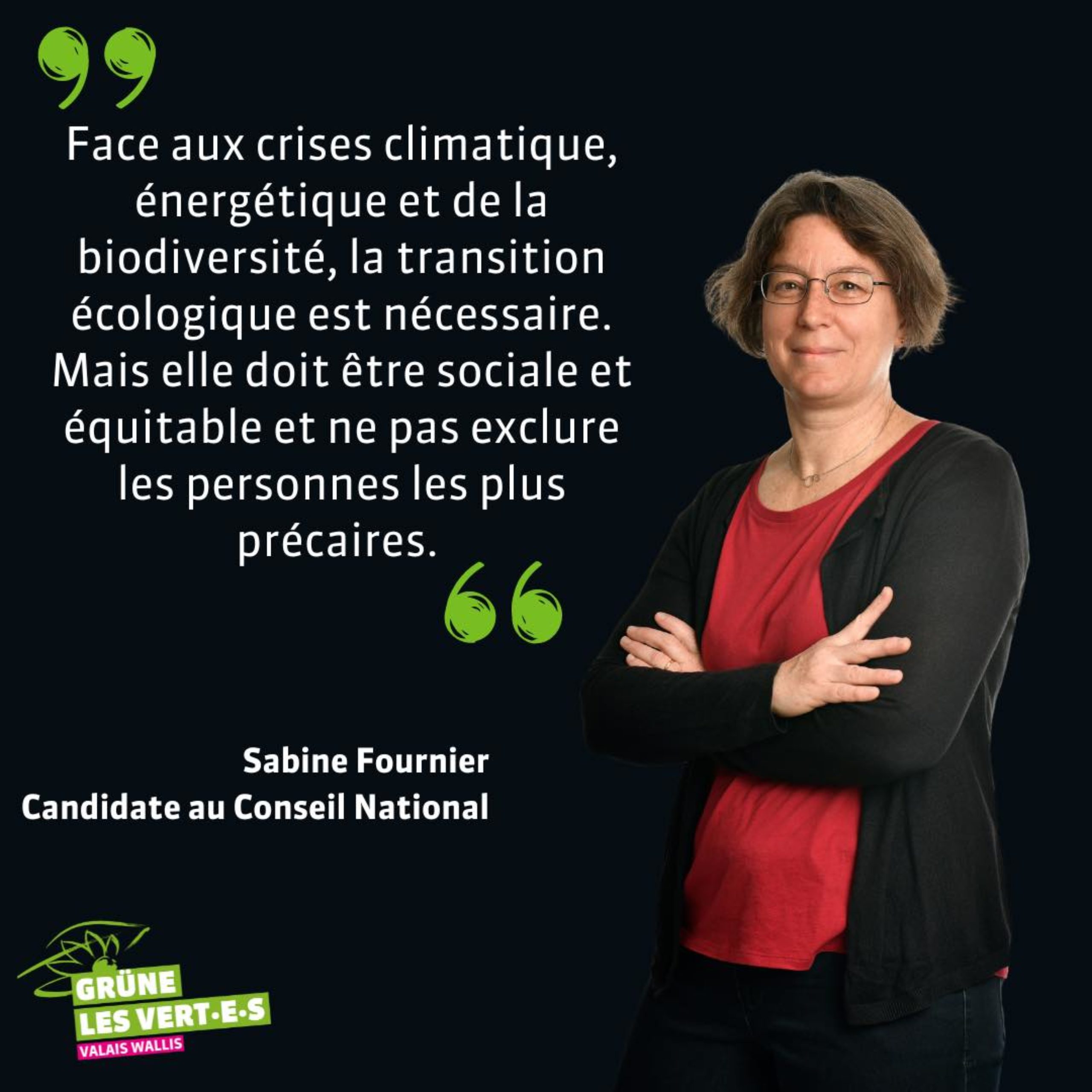 Mais la transition écologique ne peut pas se faire au détriment des plus précaires de notre société. Sabine Fournier défend une approche sociale et équitable de cette transition. Elle soutient l’introduction d’un salaire minimum, la lutte contre les inégalités, ainsi que la facilitation de la reconversion professionnelle dans le cadre de la transition énergétique. Elle promeut également une économie respectueuse des êtres humains et de la nature, axée sur l’économie locale et circulaire.