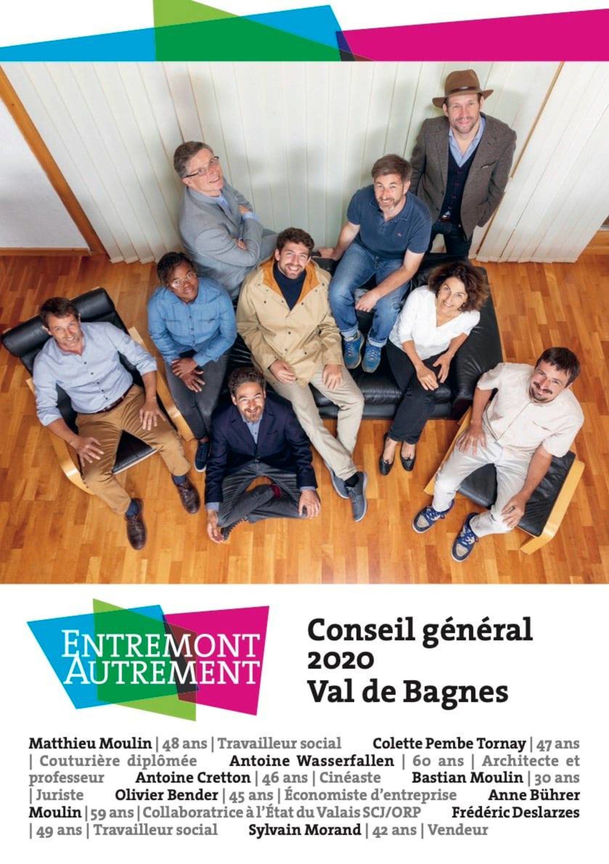 CONSEIL GÉNÉRAL : Michel Andrey, Nathalie Pitteloud Rey, Sébastien Carruzzo, Annie Thessoz Reynard, Jean-Paul Mabillard, Alexandre Dubuis, Gabrielle Frily, Ariane Mudry, Thierry Genin, Sheldon Masseraz, Julie Michel, Christian Miraillès, Nicolas Baehler, Mireille Hofmann Jacquod , Sébastien de Morsier, Brigitte Pfister Mayoraz